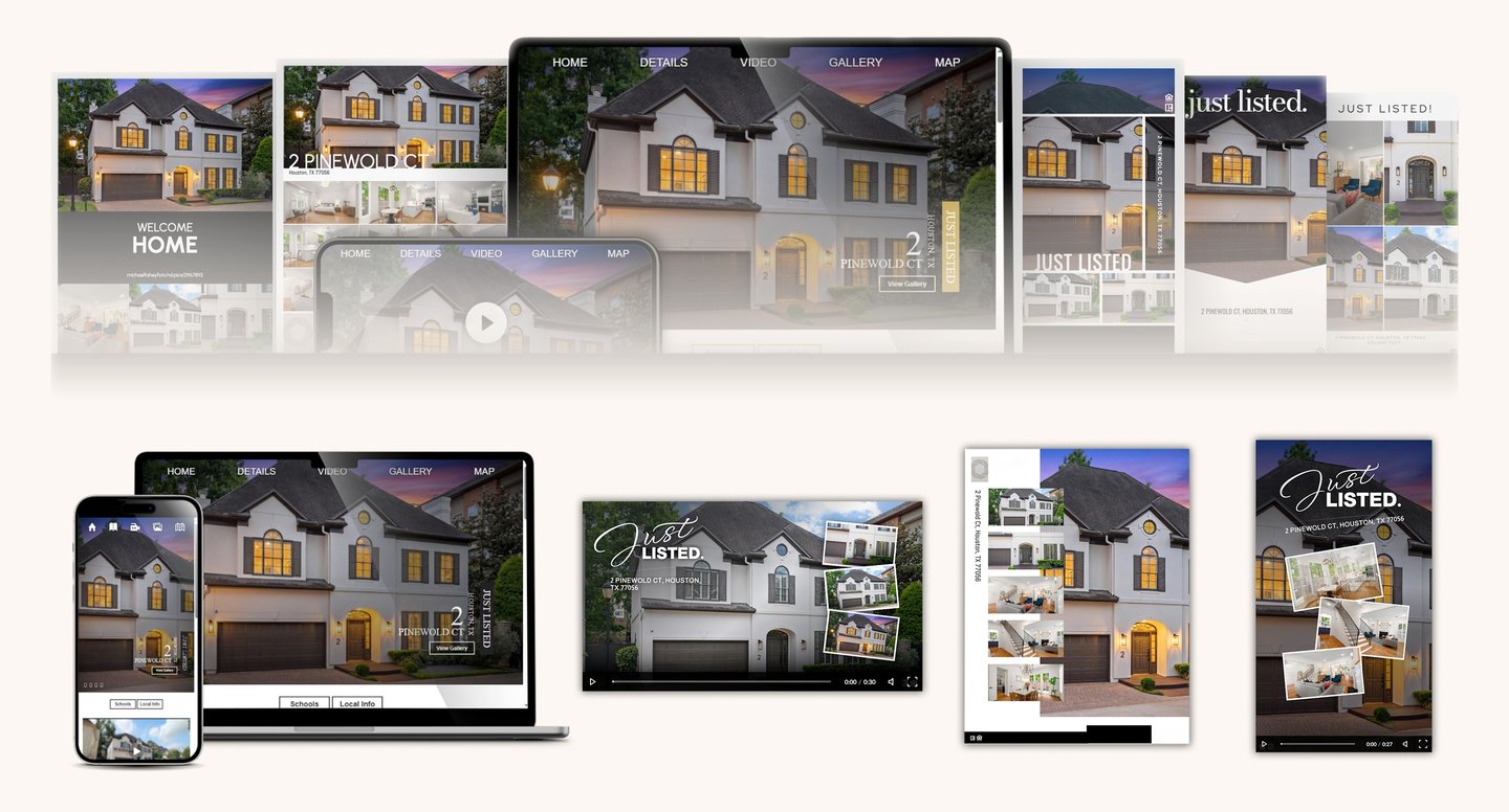 Customizable single-property sites showcasing all your listing photos, videos & tours — complete with showing scheduler, local schools & attractions. Plus ready-to-use branded social reels, posts, slideshows, and print-ready flyers & brochures